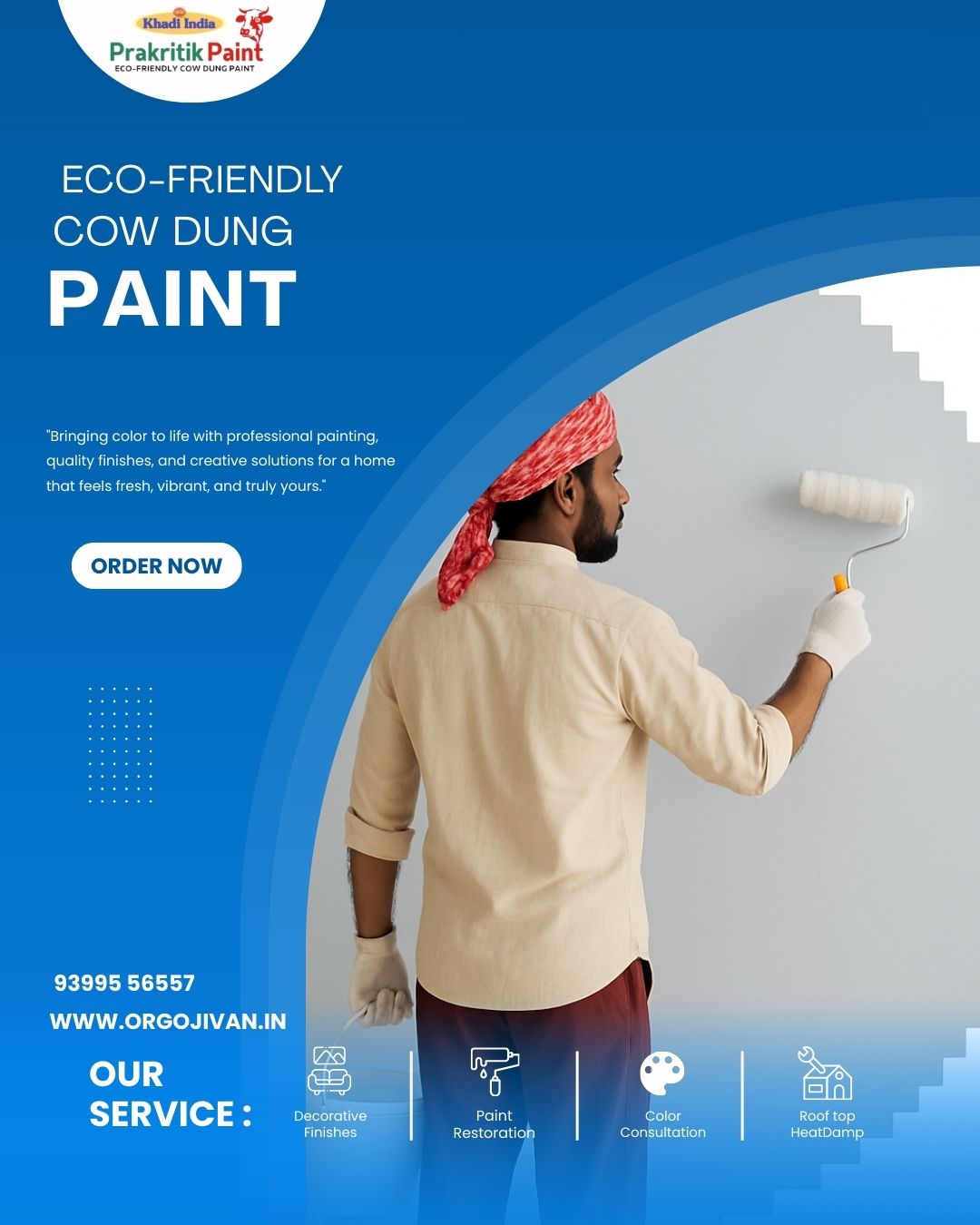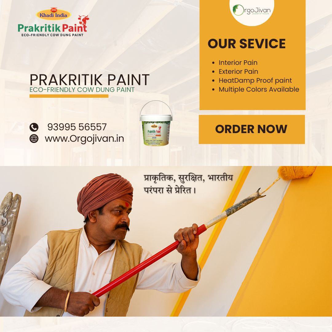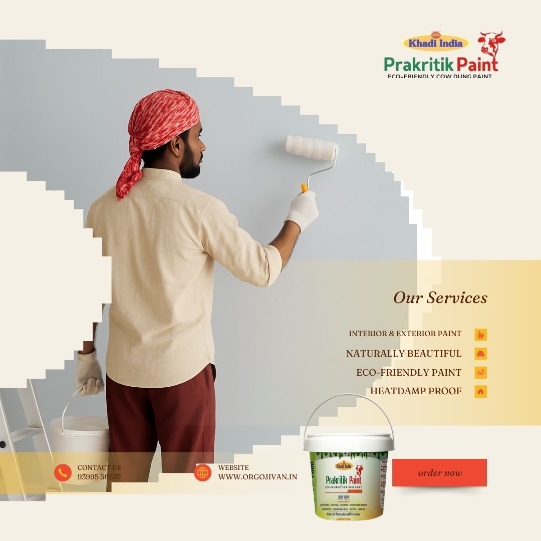 Discover Orgojivan – eco-friendly, cow dung-based natural paint that’s safe, sustainable, and rooted in Indian tradition. Perfect for your healthy home.